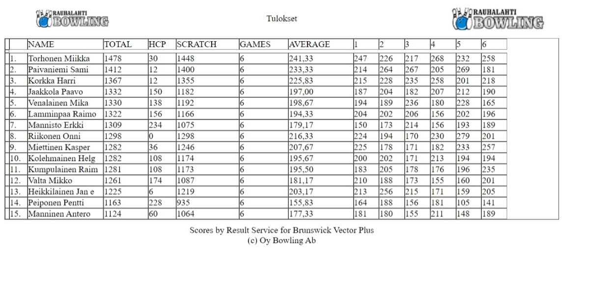 Tulokset Rauhalahti Bowling
